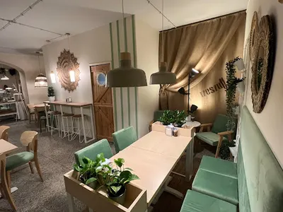 Rzeszuff to popularna śniadaniownia w centrum Rzeszowa, położona przy placu Wolności 2. Lokal cieszy się wysoką oceną 4.7/5 w Google na podstawie 909 opinii, co czyni go jednym z najczęściej polecanych miejsc na poranny posiłek w mieście. Otwarte od 8:00 rano, przyciąga gości przytulnym wnętrzem z wyciszającym wystrojem – na ścianach wiszą obrazy lokalnych artystów z rzeszowskiego festiwalu, co dodaje charakteru i promuje sztukę. Stoliki są ustawione blisko siebie, co w godzinach szczytu może powodować lekki tłok, ale obsługa jest miła i sprawna. Menu skupia się na świeżych śniadaniach przygotowywanych na miejscu z wysokiej jakości składników. Klienci chwalą dania na słodko i słono, takie jak brioszki z boczkiem, jajka poche, labneh z bobem czy jagodzianki z kremem. Do wyboru są też wypieki, ciasta, drożdżówki i chleby na wynos, a z napojów wyróżniają się kawa, kakao, matcha oraz herbaty, w tym rozgrzewająca na konfiturze malinowej. Porcje są sycące, często z koszyczkiem ciepłego pieczywa i masłem, choć brakuje szerszej oferty wegańskiej. Goście doceniają smak i estetykę podania, podkreślając sezonowe akcenty i świeże produkty, mimo dłuższego czasu oczekiwania – nawet 20-40 minut w ruchliwe pory. Rzeszuff to solidny wybór na spokojne śniadanie w Rzeszowie, wart wizyty dla miłośników jakościowych wypieków i kawy. (198 słów)